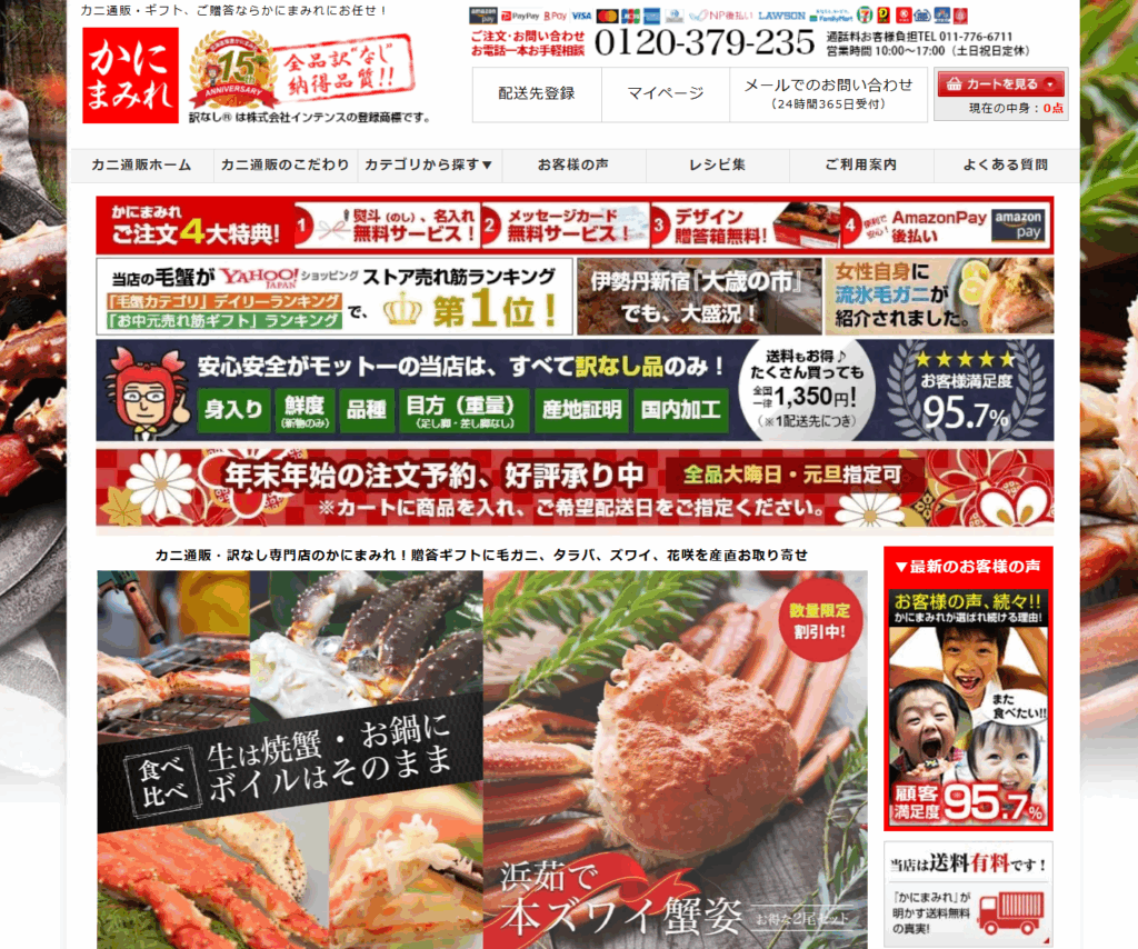 かにまみれは北海道発のカニ通販専門店です。特徴は「訳ありを一切扱わない」こと。
