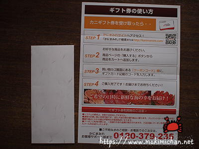受け取った人は公式サイトで商品を選び、決済画面にギフトコードを入力するだけ。説明書もあり、手続きもとても簡単そうでした。